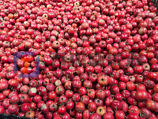 1、首先將山楂洗凈切片,厚度約2CM,采用切片機完成,這樣可以保證山楂片厚度均勻,在烘干的過程中也能夠受熱均勻,利于循環(huán)排濕。