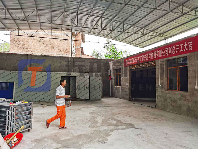 3、烤房循環(huán)系統(tǒng):熱風(fēng)循環(huán)系統(tǒng),將熱量帶到吳茱萸烘干機(jī)的每個角落提高烘干機(jī)內(nèi)的溫度,并將物料蒸發(fā)出來的水分帶走。